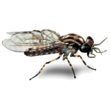 Lebensweise: Fliege 10-16 mm lang, schlank. Brust hellgrau mit 3 dunklen Längsstreifen. Hinterleib schachbrettartig hell- und dunkelgrau gefleckt. Bringt an Tierkadavern im Freiland lebende weißliche Larven zur Welt.